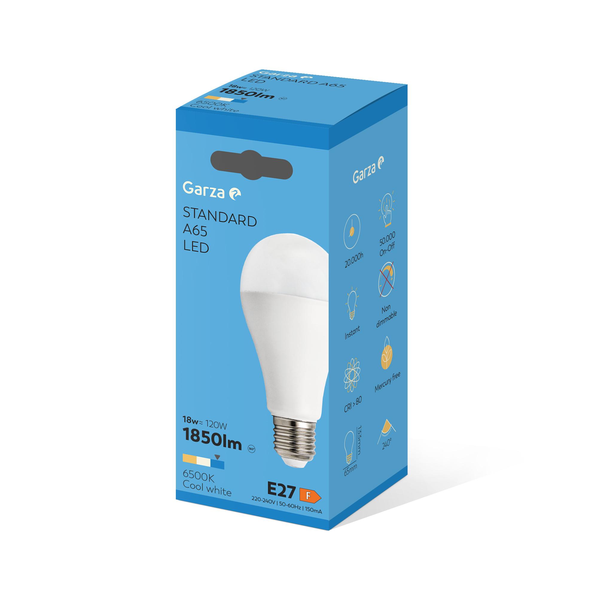 GARZA LED STD E-27 18W LUZ FRÍA 65K 1800 LUMEN